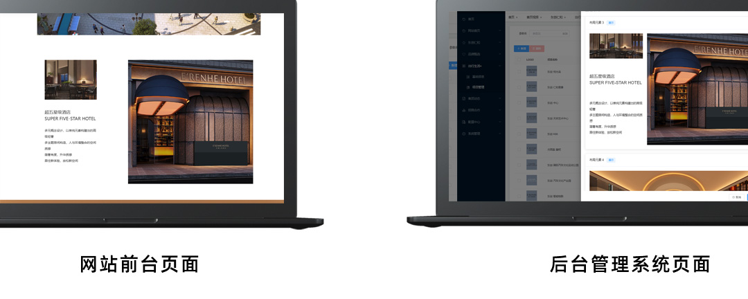 在东创仁和的网站后台管理系统里面,我们直接嵌入了网站的前台页面布局,用户可以直接在后台看到具体需要修改的每一个板块,真正做到所见即所得,大大提升了用户后期的更新维护时间。