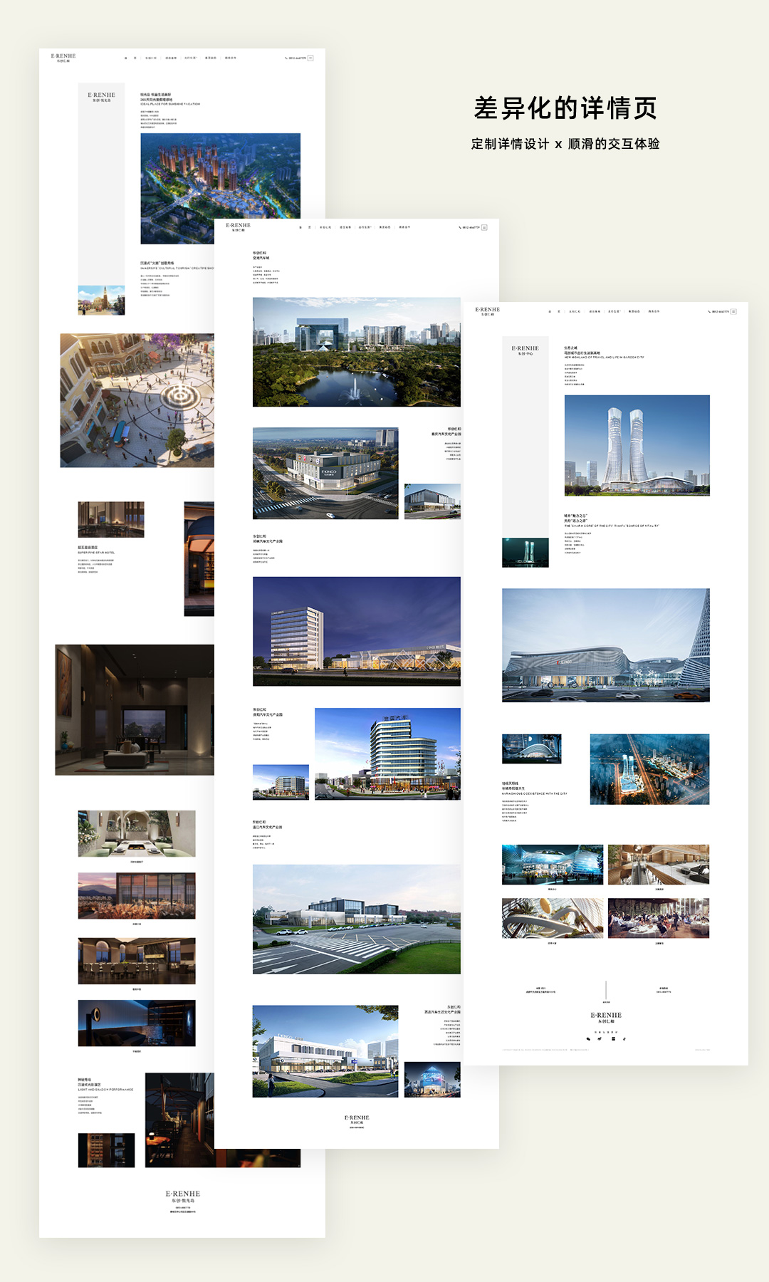 在常规项目的处理中,我们通常采用统一的详情页面来对信息进行展示,但在东创仁和的项目详情页面设计中,根据东创不同项目资料差异化比较大的特点,我们进行了每个项目详情页的定制化设计,同时搭配交互设计,从而提高用户的满意度和使用体验。